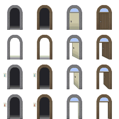 Современные предметы и двери. См. так же тайлсеты (коллекция отличных тайлов современного Японского города) и аутотайлы (на ту же тему: стены, зелёные насаждения и т.п.)